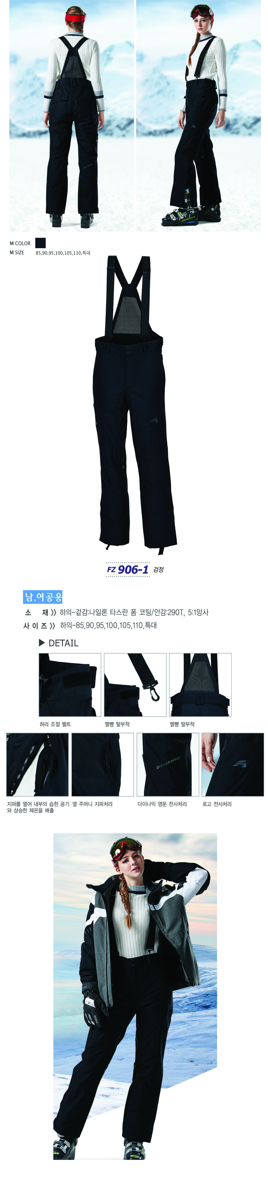 푸조 보드 스키복 [상,하의 별도판매][남녀 공용] / 상의 FZ828-5, 하의 FZ906-1/ 블랙+멜란지