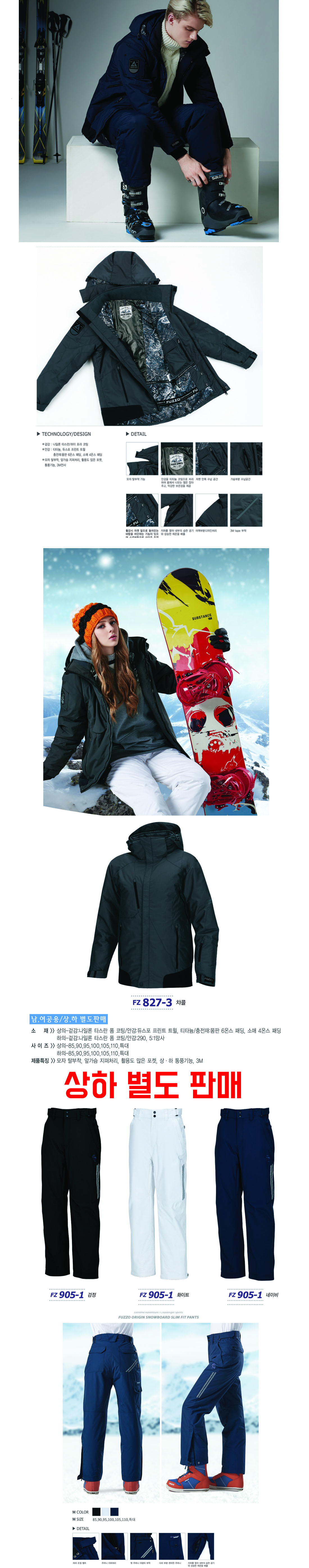 푸조 보드 스키복 [상,하의 별도판매][남녀 공용] / 상의 FZ827-4 하의 FZ905-1/ 네이비