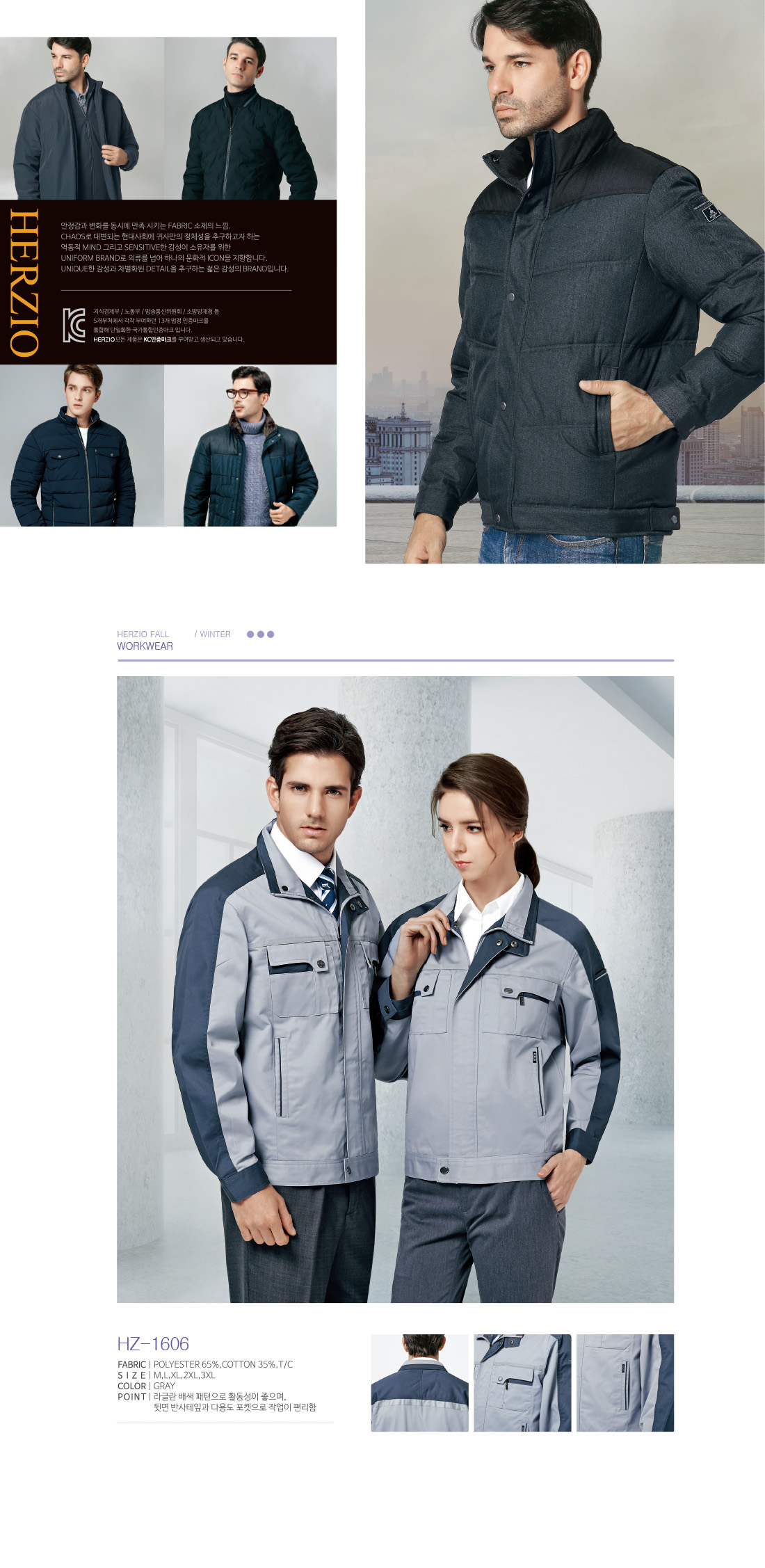 헤르지오 HZ-1500 [상,하의별도판매][단체근무복,근무복,동계근무복,사무복] / 그레이+네이비
