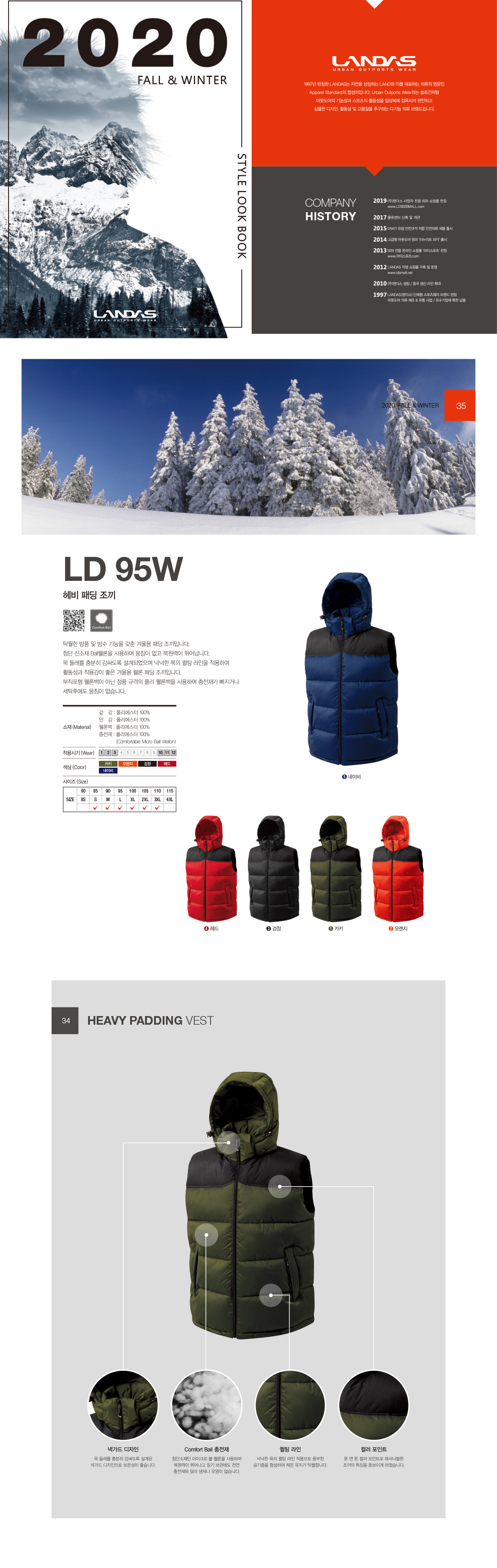 랜더스 헤비 패딩조끼 / LD 95 W / 레드 [단체패딩조끼,겨울패딩조끼,패딩조끼,겨울조끼]